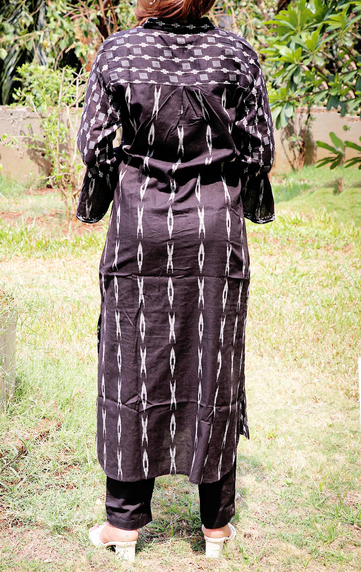 | Description | Black Katha stitched kurti with beautiful sequins work and fan sleeves |