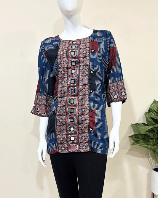 Shop stylish Plus Size Ajrakh Kurtis at Rajwadse. Our collection features handcrafted...